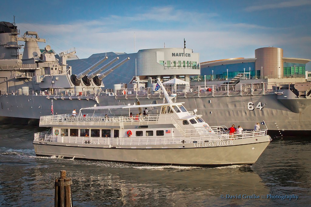 *Visit the ‘Nauticus’ and the National Maritime Center that allows visitors to explore the power of the sea with high-tech virtual reality – really neat! Step onto the Battleship “USS Wisconsin”, one of the largest battleships ever built – used during the Korean Conflict and Gulf War.